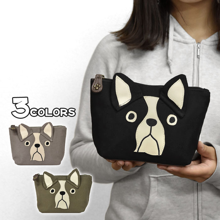 FLAPPER (フラッパー) ブブリン フェイス ポーチ /レディース ミニ コスメポーチ 化粧ポーチ 小物入れ 雑貨 犬 イヌ いぬ 犬グッズ フレンチブルドッグ ボストンテリア ブブリンフェイスポーチ キャラクター コットン グレー カーキ ブラック 黒/ 詳しく見る